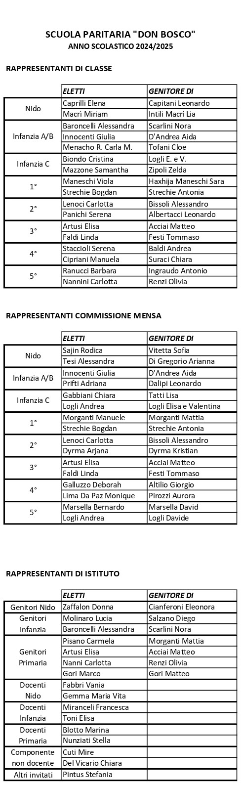 Per l'Anno Scolastico / Educativo 2024/2025, gli eletti sono: