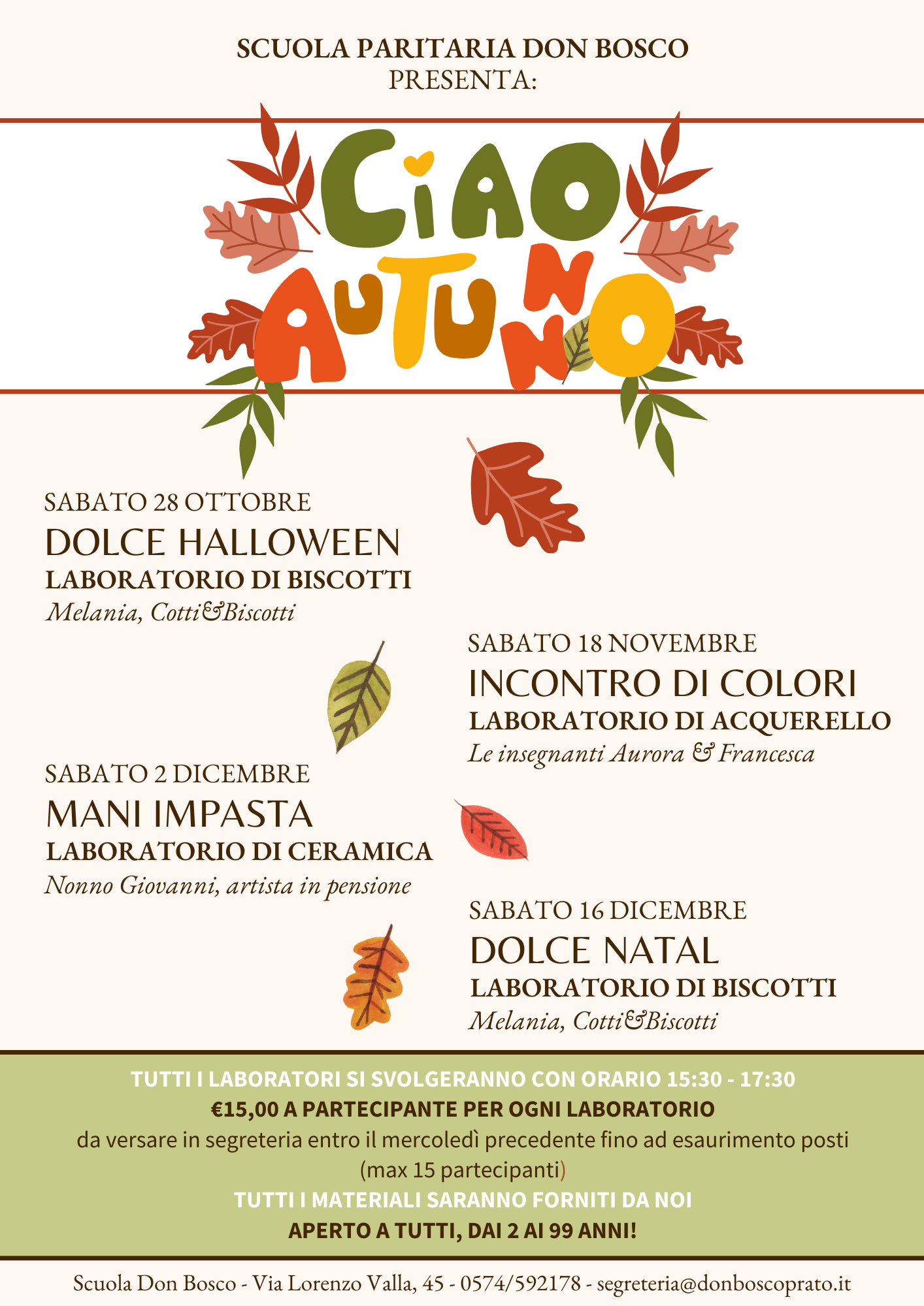 Chiamate la Segreteria per qualsiasi dettaglio ed informazioni, e per iscrivervi.